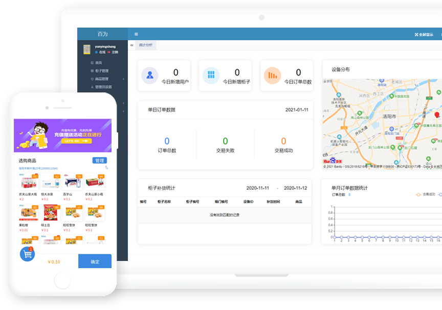 支持PC、移动端运营管理,随时随地查看运营情况,智能补货