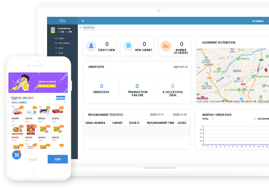 Support PC, mobile terminal operation management, anytime and anywhere to check the operation situation, intelligent replenishment