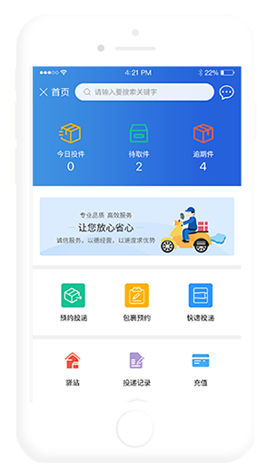 专为快递员打造的投递APP,支持投递、查看订单等功能,可随时掌握快递情况,是快递员与用户之间的桥梁
