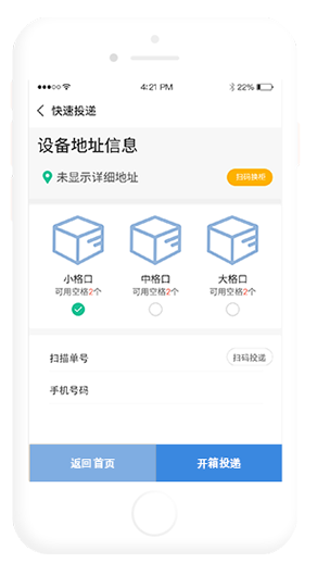 操作便捷,安全智能可根据快递大小,自选大小箱
